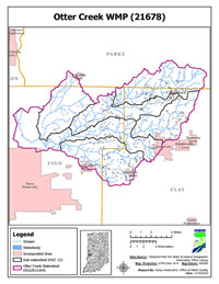 The Otter Creek Watershed (OCW) covers 79,422.3 acres in Clay, Vigo, and Parke Counties in west Indiana. The OCW is made up of seven watersheds that each has a 12-digit Hydrologic Unit Code (HUC) area.