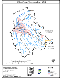 The Walnut Creek – Tippecanoe River Watershed, Hydrologic Unit Code (HUC) 051201060203, is located predominately in Kosciusko County with 2% located in Whitley County to the east. The watershed is an area of land (78,406) that drains to the Tippecanoe River.