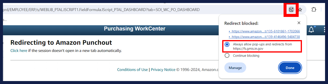 To avoid having to allow pop-ups every time you sign in, navigate to the pop-up blocker in the upper right corner of your window and allow the redirect. This will allow you to automatically sign on the next time you use the site.