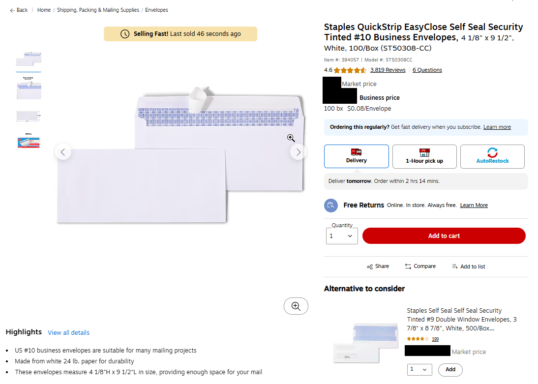 Alternatively, clicking on your desired item will direct you to a product page. From here, you can also select the item quantity you need and add it to your cart.
