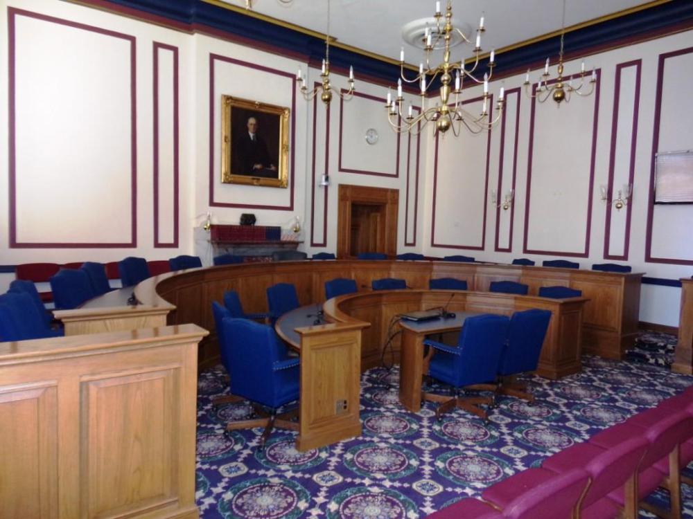 The members of the Indiana House of Representatives serve on various standing and summer committees. These committees consider, research, debate, hear public testimony and revise proposed legislation. The Ways and Means Committee Room is one of many located in the State House and is where Indiana’s bi-annual budget debate begins.