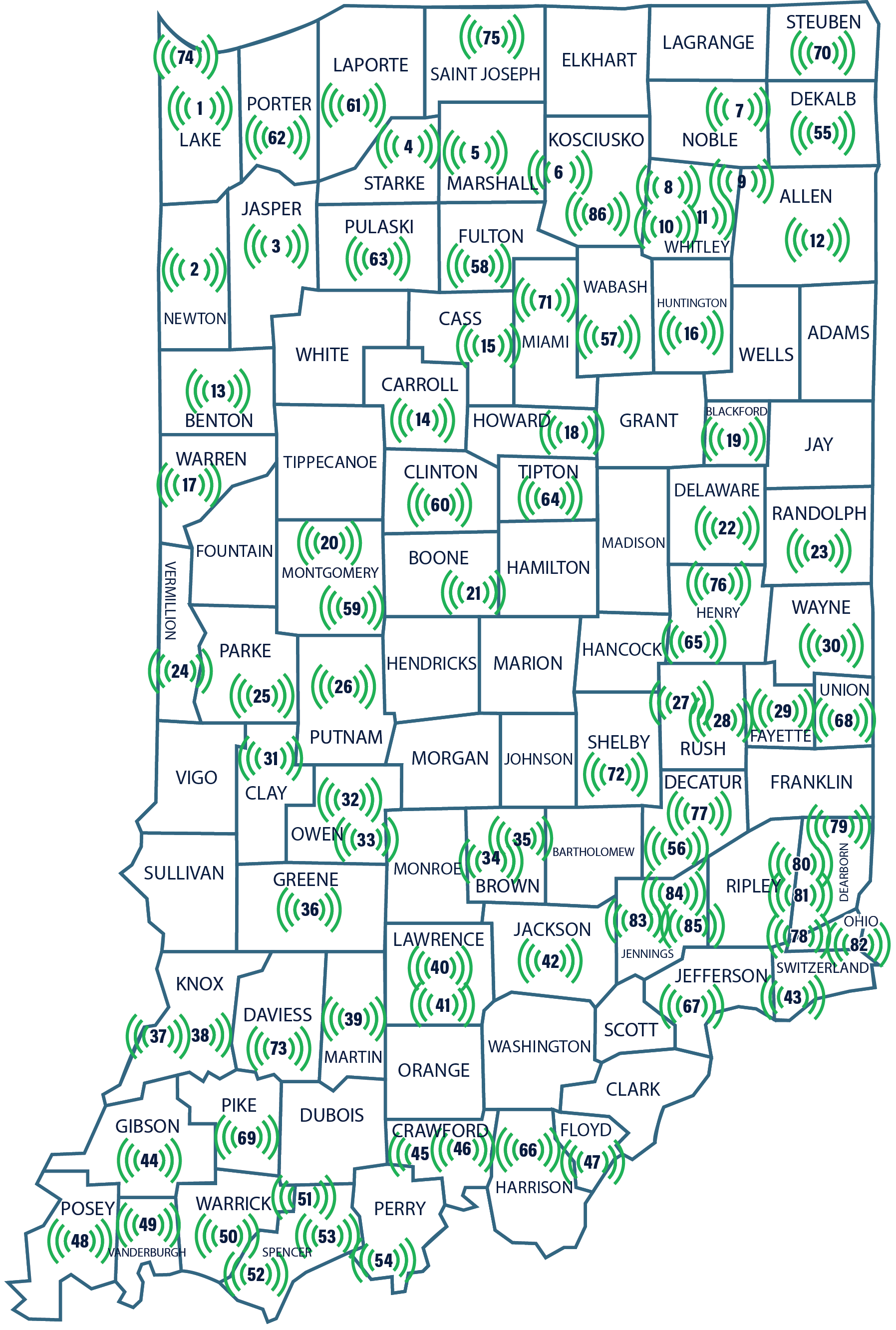 If you are aware of a community that has a leadership group not shown on the map, or if you would like more information about what procedures these communities followed, email us at IndianaBroadband@iot.IN.gov