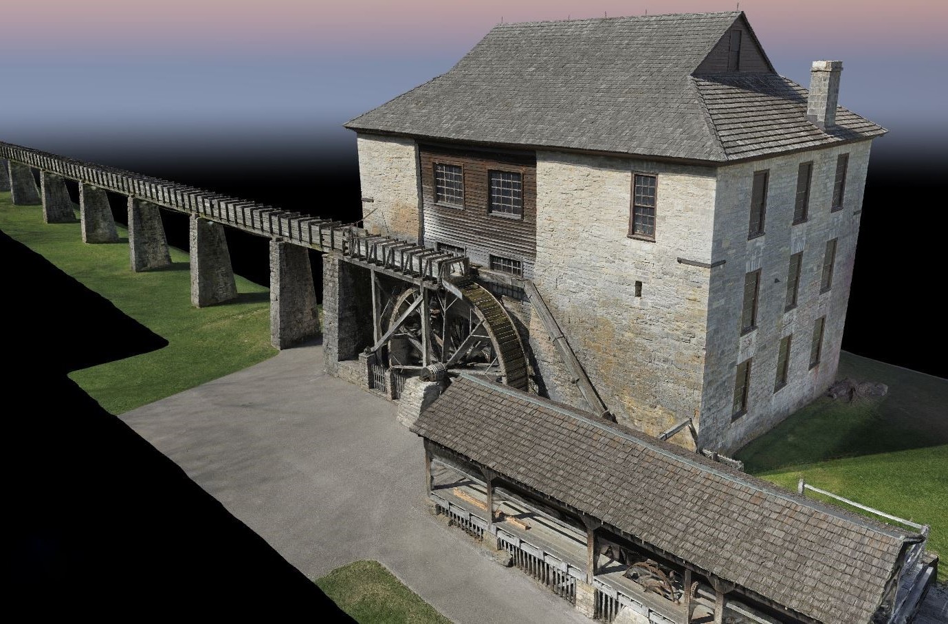 This spring, our Land & Aerial Survey Office collected imagery and LiDAR scan data of the gristmill at Spring Mill State Park in Mitchell, Ind., before the historic water-powered mill is renovated this fall.