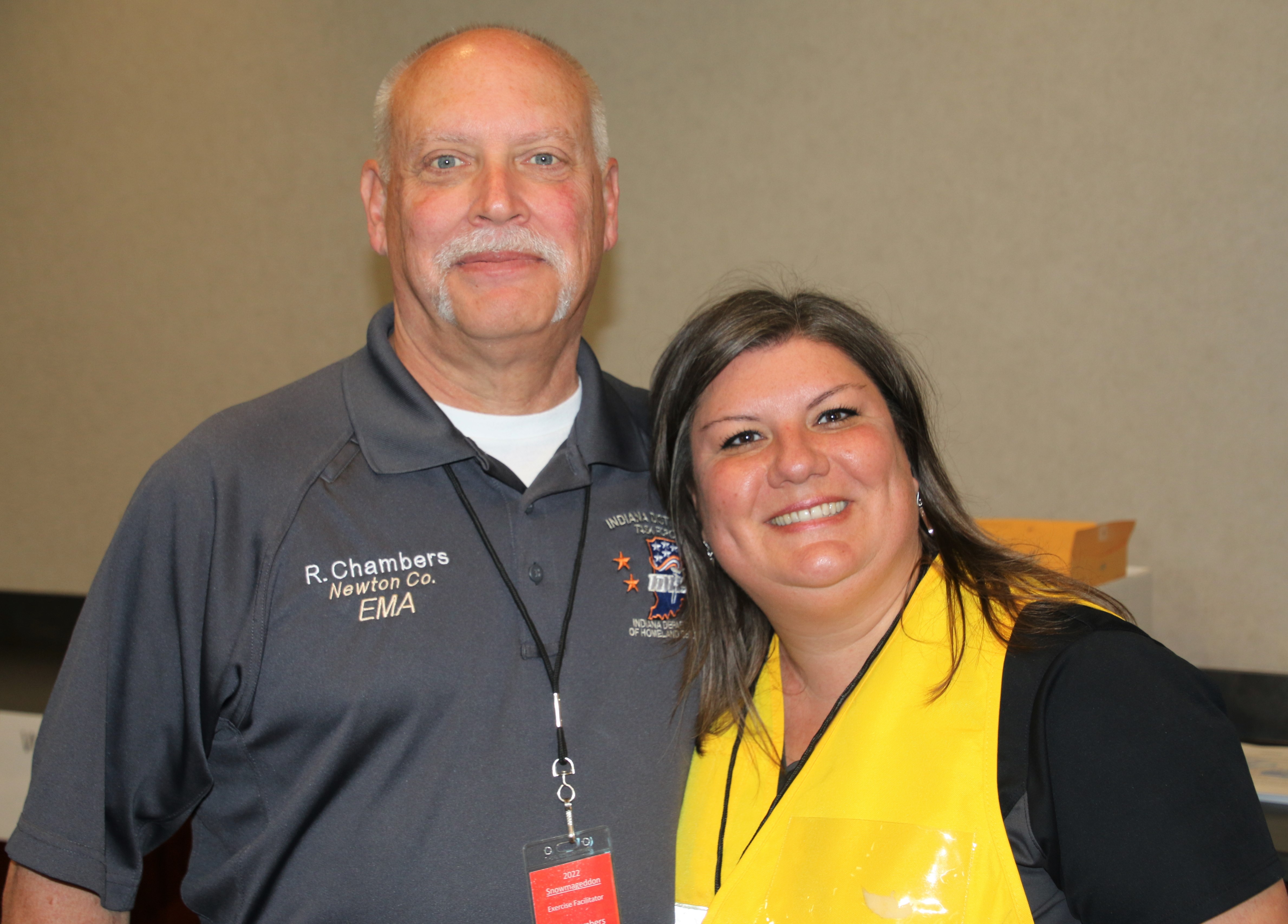 Each of 44 participating agencies huddled privately to talk through several questions for discussion regarding their response to the scenario. These agencies included emergency management, fire, and police departments; towing companies; coroner’s offices; American Red Cross; Indiana National Guard; ISP; and IDHS. INDOT groups included the LaPorte, Crawfordsville, Fort Wayne, and Greenfield districts; Central Office; and the Gary and Indianapolis Traffic Management Centers, including Hoosier Helpers.