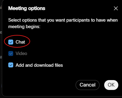 - IOT also recommends turning off the chat in the Teams meeting so that you only need to monitor chat in vbrick. Chats sent in the Teams meeting will not be captured in the vbrick recording.