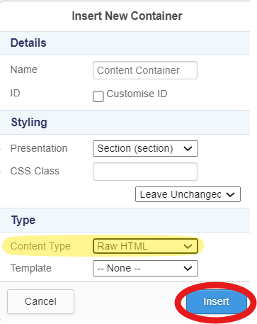 - Webmasters - Log into your CMS (Squiz) and navigate to the page you would like to embed your meeting. Click on the plus to insert a new container on the page.