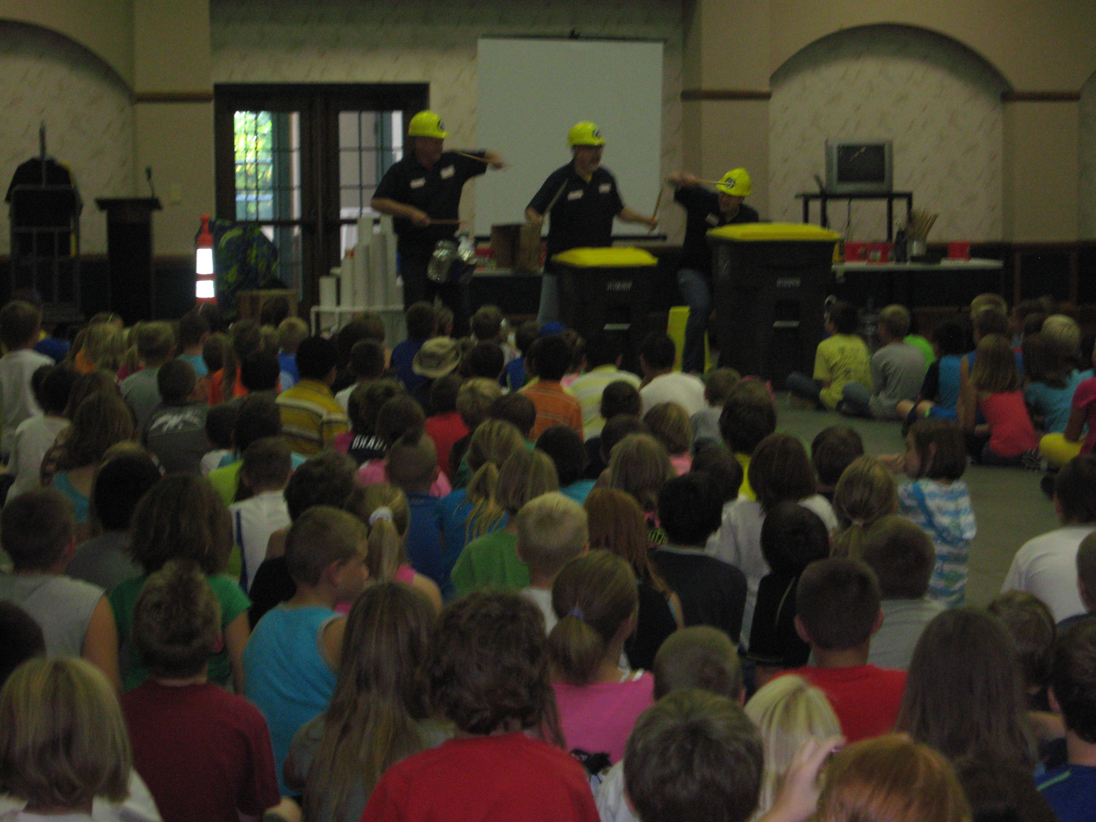 1) The Steuben County Soil and Water Conservation District and The Steuben County Cooperative Extension Service hosted our annual Youth Conservation Field Day for the Fremont and MSD School Districts at Pokagon State Park on Tuesday, September 10, 2013. Two hundred and ninety eight fourth graders from these school districts enjoyed time away from their regular school day learning about several areas of conservation. Topics included a Wildlife interactive session with Marjorie Hershman from Pokagon State Park; a Forestry presentation by Hank Hefner, IDNR District Forester; a demonstration on Fish Management from Larry Koza, Fisheries Biologist from the Fawn River Fish Hatchery; Entomology and 4-H Natural Resource Projects from Extension Educator, Tami Mosier; Soil Education and demonstration from Hilary Barnhart, Soil Conservationist with The Natural Resources Conservation Service; a presentation on water quality and science fair projects by Janet Bohney from the Steuben County Lakes Council; and a general session about Recycling right before lunch with the Dumpster Drummers, an environmental educational music group from Fort Wayne. The program began at 9:00 am at the park with students attending 20 minute sessions with each speaker. Weather for the day was beautiful and the children were able to enjoy the gorgeous Lake James setting at the Park. As the day progressed, temperatures soared into the 90’s; making the two sessions following the lunch break a little uncomfortable. The day ended around 1:30 pm, so everyone could get back to school before dismissal. The Northeast Indiana Solid Waste District sponsored the Recycling session with the Dumpster Drummers this year bringing a new facet to the day. Educational materials and Activity Books were sent to the schools as reinforcement material to use as a follow-up on the field day education. The Soil and Water Conservation District, City of Angola, Municipal Separate Storm Sewer System (MS4) Committee, Steuben County Lakes Council, and Purdue Extension office sponsored these materials. The Youth Conservation Field Day has become an annual tradition to educate the local youth about conservation. It has been held every year, except two, for the Fremont and MSD fourth graders since 1984. The Steuben SWCD has been able to secure a SARE Youth Educator Grant for 2014 to continue to expand this very successful field day.
