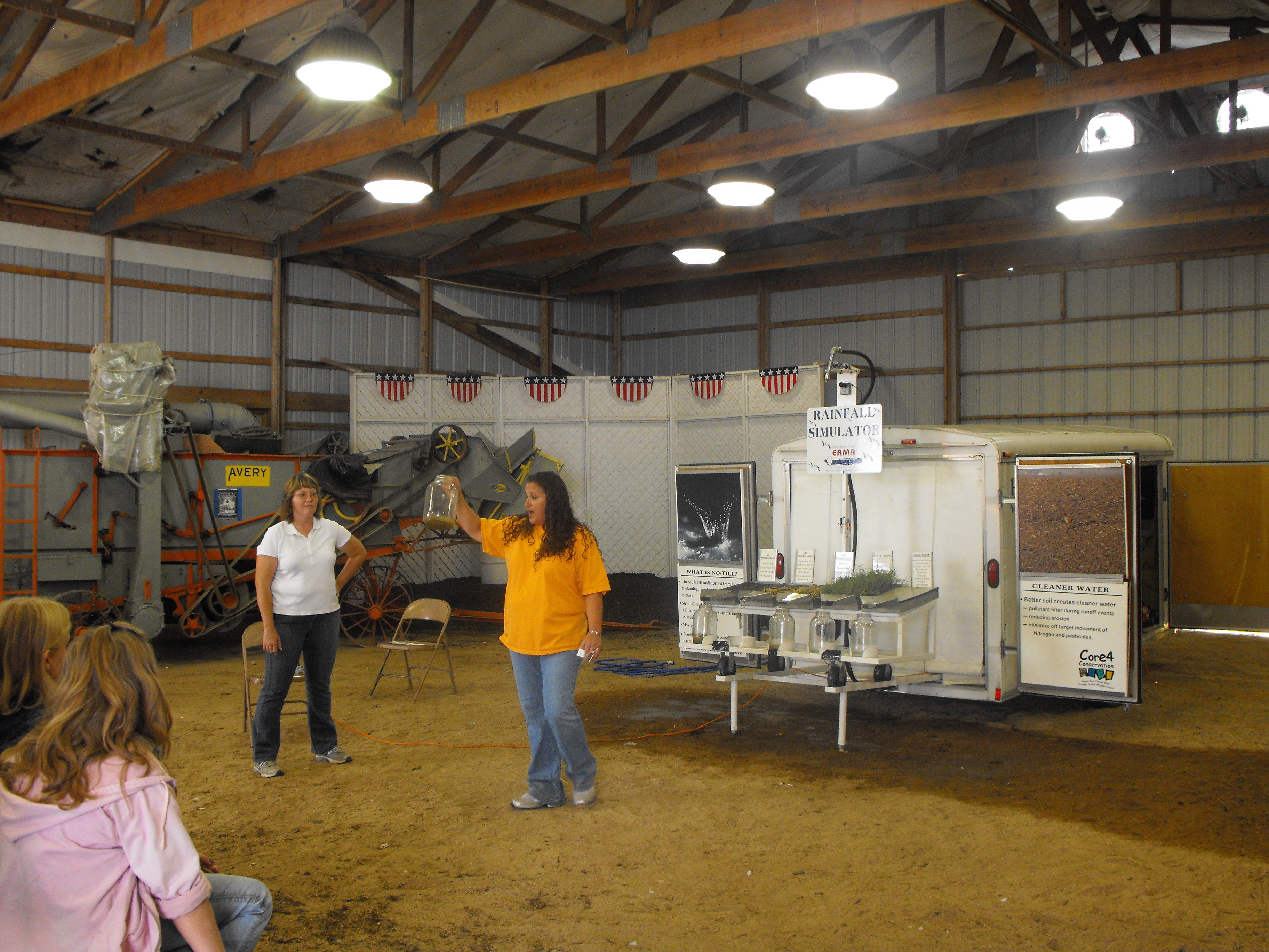 Vigo County Beginning in 1987, the Vigo Co. SWCD started Conservation Field Days for all 5th grade students in the county. This first few years this event was hosted at a local farm in the county, the kids were taught about soils, water quality, agriculture, and livestock. Due to the amount of children in the county the event had to be moved to the Vigo Co. fairgrounds and has expanded to a three day event, with approximately 1,300-1,400 students that attend. Today the event has expanded to twenty different stations; including Weather, Water Quality, Agronomy, Forestry, Beef Cattle, Dairy Cattle, Bees & Butterflies, Bats, Fish & Wildlife, Wetlands, Ag History, Swine, Poultry, Soils, Recycling Top Soil, Area Planning & Development, Geology/Reclamation & Non-Renewable Resources, Stormwater, and Conservation Officers. This event gives the students the opportunity to become more familiar with the world around them. We feel it's important for the kids to get an understanding of our natural resources and how important they are to protect. We are fortunate that with all the cuts to the school corporation budgets, this event is an approved school field trip each year. To host this event, we rely on many volunteers -most of them are speakers for a station; there are about 50-60 volunteers per day. We are very fortunate to be able to partner with other SWCD's, City and County employees, Master Gardeners, Purdue Extension, Indiana American Water, WTWO-Channel 2 News, WTHI-channel 10, Tribune Star, Indiana Soybean Alliance, Purdue Farms, Indiana Beef and Dairy Cattle Council, Sycamore Trails RC&D committees, Conservation Officers, Seelyville Water Works, St. Mary of the Woods College/White Violet Center, Indiana State University and Farm Bureau. This field day allows many of children who have never had a chance to see a real beef or dairy cow, a baby pig, or hold a baby turkey to do so. The letters we receive from the schools after the fact are always so rewarding, the children are so appreciative and always say, I wish I could come back again next year. We also hope this event will spark something in a child and that they may join 4-H, start recycling at home, become more aware of their surroundings in the environment.