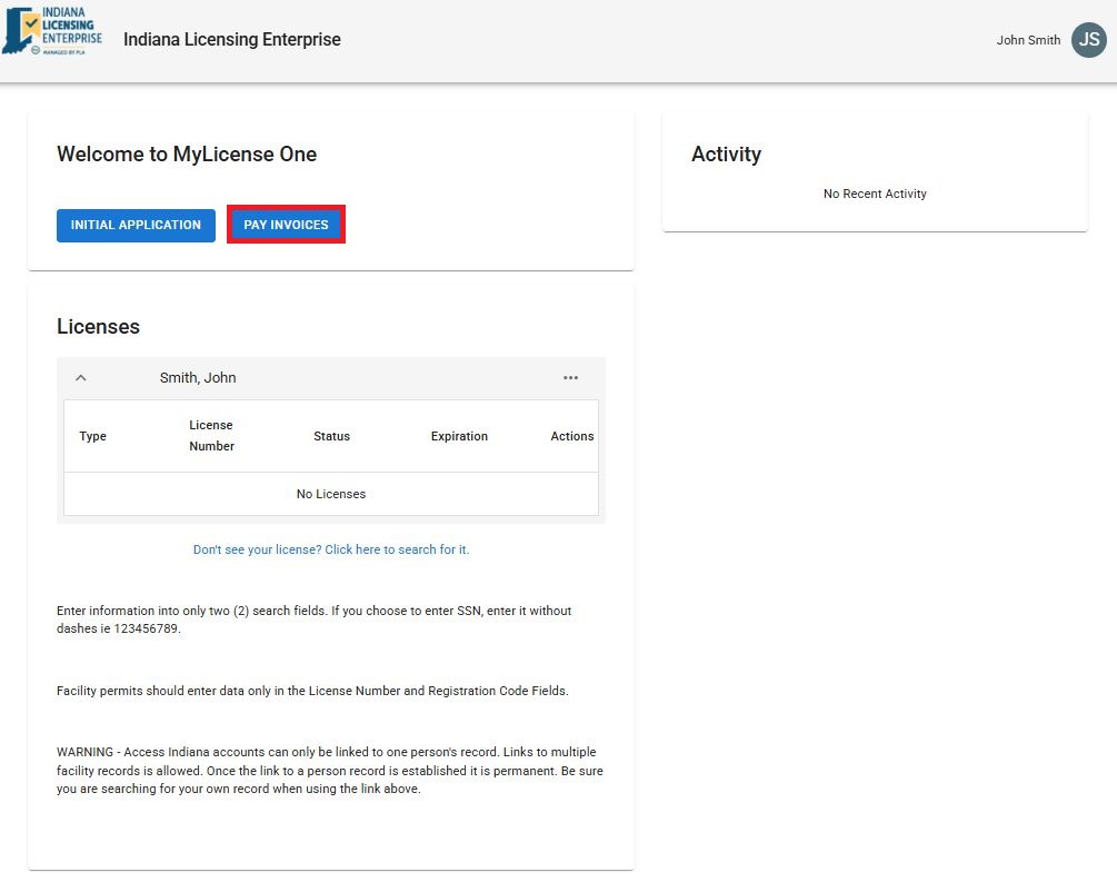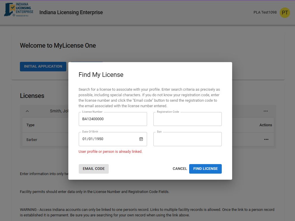 Now that your ML1 account has been created, check for any existing records! Think back, do you have any licenses, certificates, or permits with any other Indiana State Agency? In addition to any other PLA license, this may include those issued by ATC, IDOH, IDEM, DNR, and/or SOS. Or have you applied previously, but never issued a license? These are all reasons you may have an existing record that must be linked.