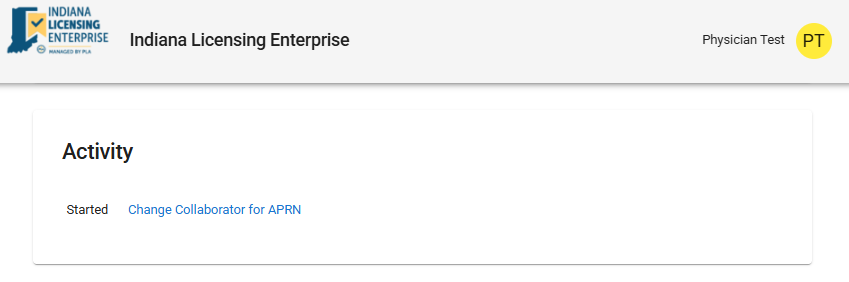 A Licensed Practitioner may now login to their MyLicense One account and to review any requested change of collaborator submitted by an APRN. The Licensed Practitioner will receive an email regarding the request that was submitted and then the request will appear in the Licensed Practitioner's Activity Panel in their MyLicense One account.