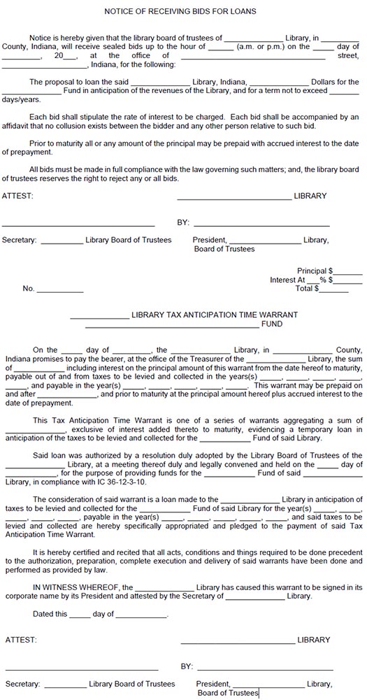 - in an amount determined by the library board; (It is recommended that the minimum amount of a Treasurer’s bond be at least $15,000)