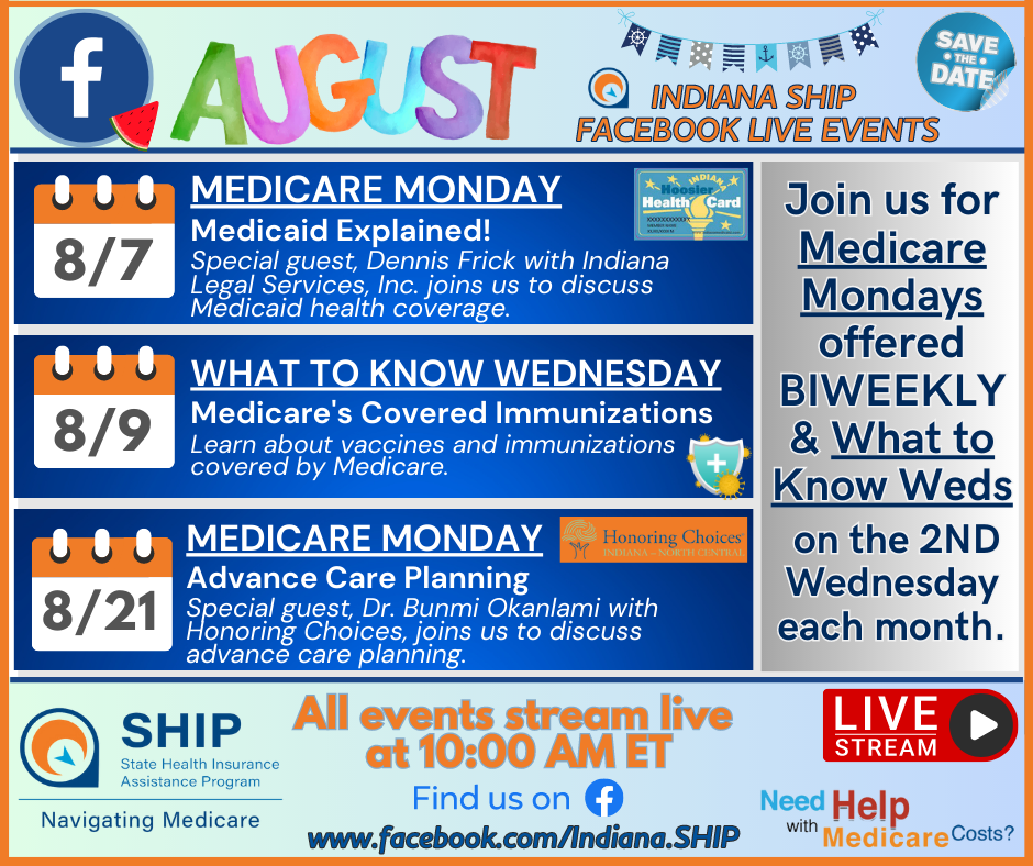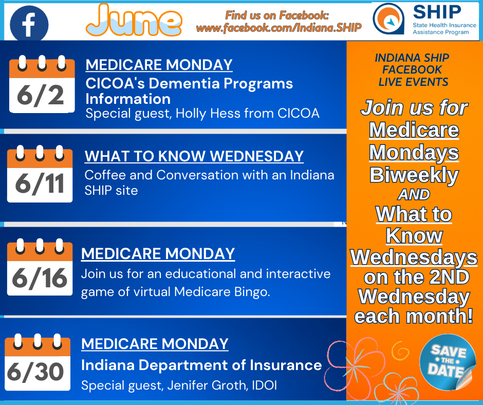 Have you watched any of SHIP's Facebook Live events? Missed one live? You can watch any of our past FB Live events at http://www.facebook.com/Indiana.SHIP | Indiana SHIP offers quarterly New to Medicare webinars intended for people who will soon be joining Medicare? |