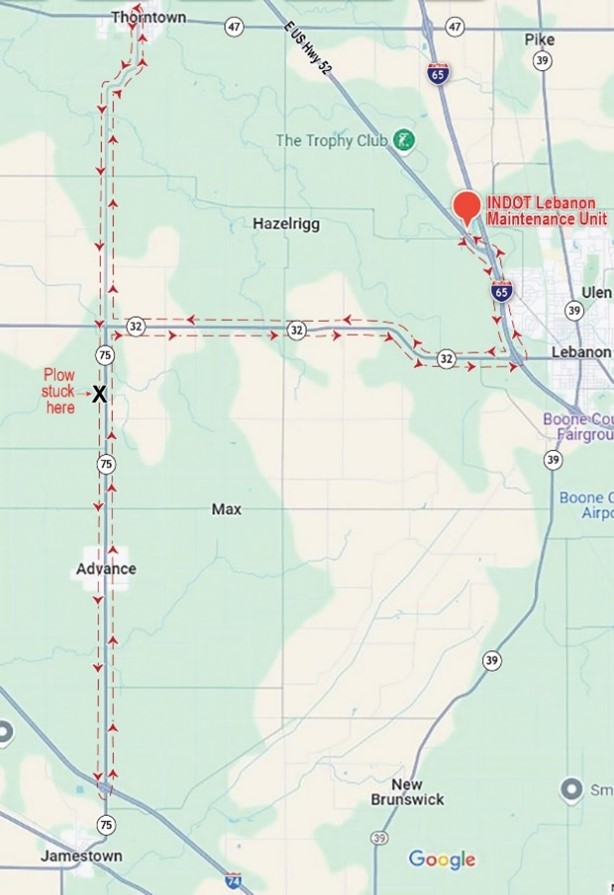 “I drove the truck back and forth a few times and was able to turn it around and head back toward Lebanon,” said Bewley. “When I informed the subdistrict of this, they advised me that I was one of the few trucks out. They wanted me to go to Zionsville to get State Road 334 opened.”