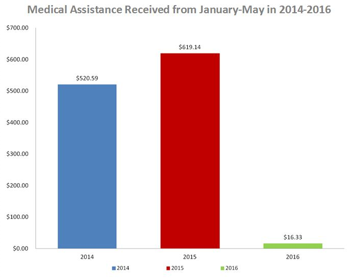 The office is still looking into what may have caused the decrease in applicants for Township Assistance. Multiple factors may be at play, including a decreasing unemployment rate, warmer winters driving down utility bills, gentrification of residential neighborhoods in Perry Township, the closure of Southern Winds Inn in July 2015, a change in potential spending habits of Township residents, and more. Alternately, the food pantry's traffic may have increased due to factors including changing rules governing Indiana SNAP food stamp guidelines. And the decline in assistance paid out for medical expenses has plummeted since the Healthy Indiana Plan (HIP) medical insurance began covering dental costs.
